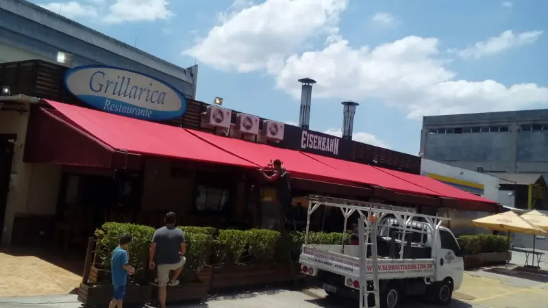 Saiba mais sobre Toldo de Trilho A solução definitiva para cobertura de grandes áreas que necessitam de um teto móvel. Aplicado largamente em bares, restaurantes , casas noturnas e também residências.